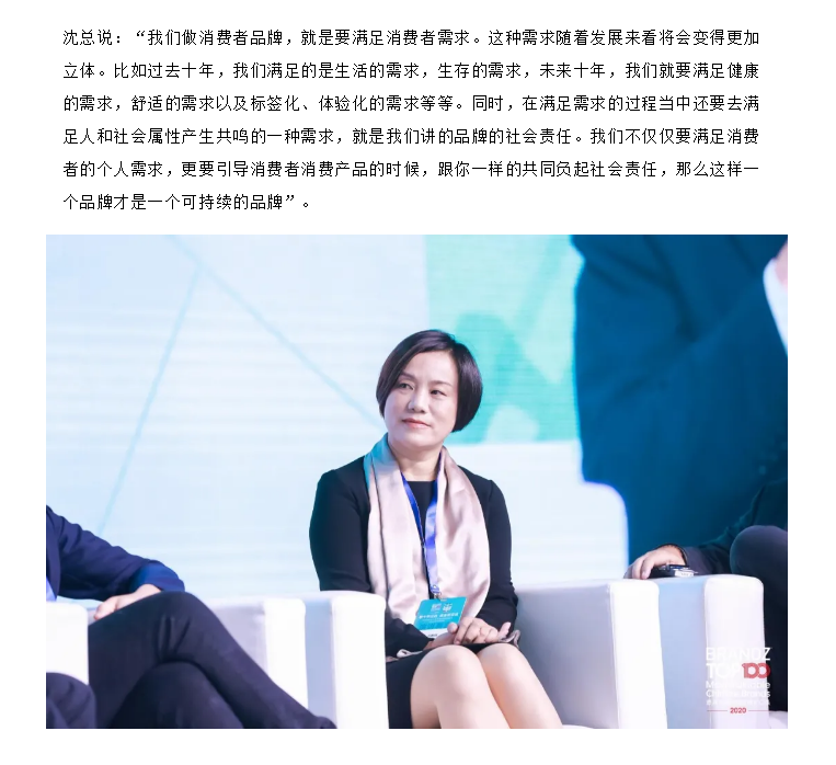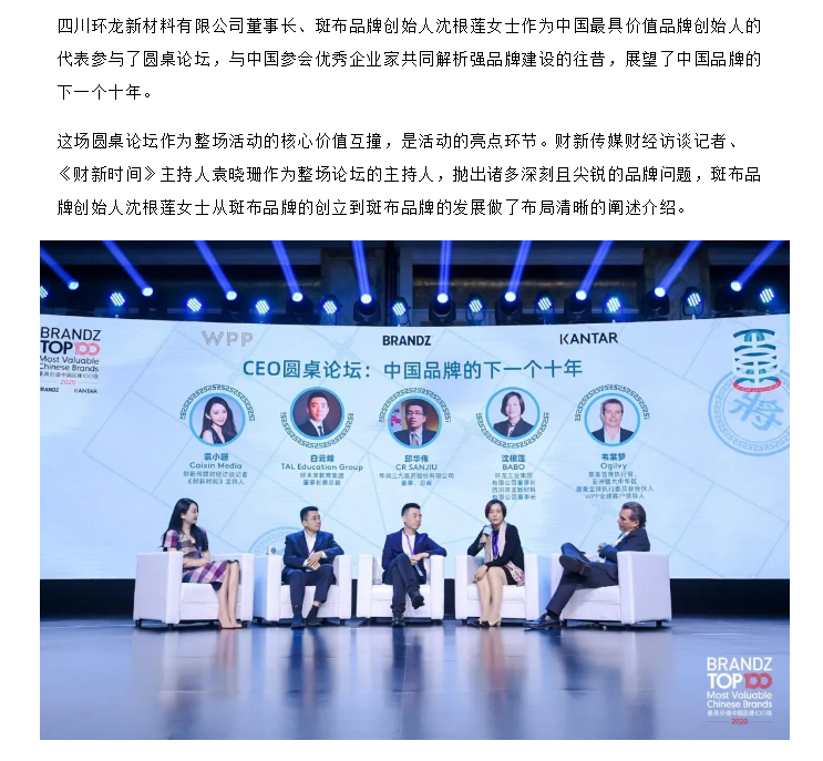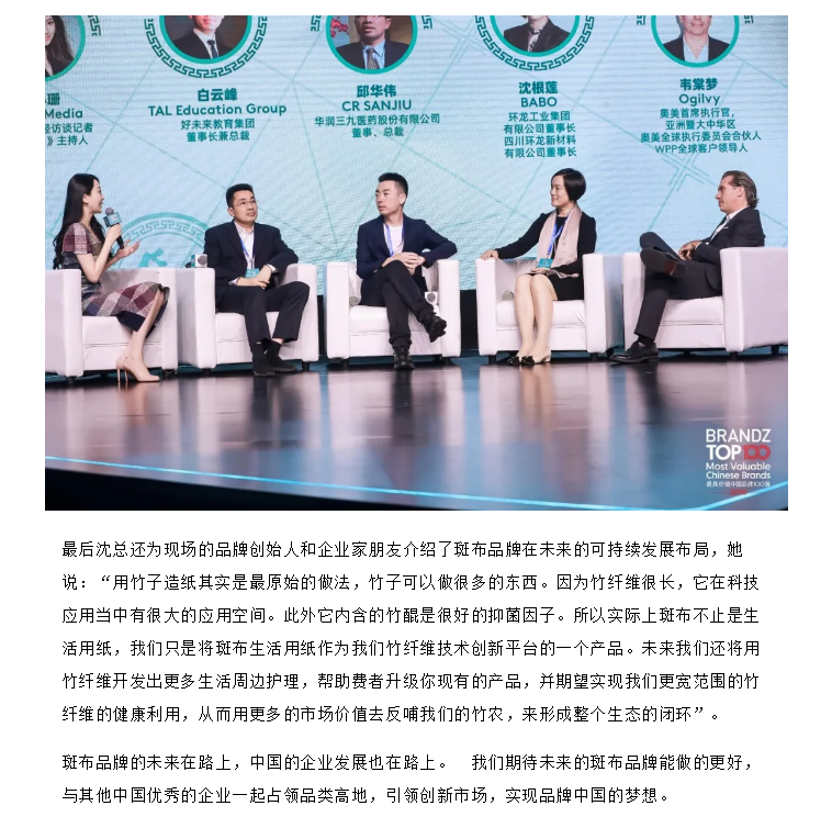 斑布品牌創始人沈根蓮出席BrandZ?中國品牌100強發布會并提出品牌向善的理念