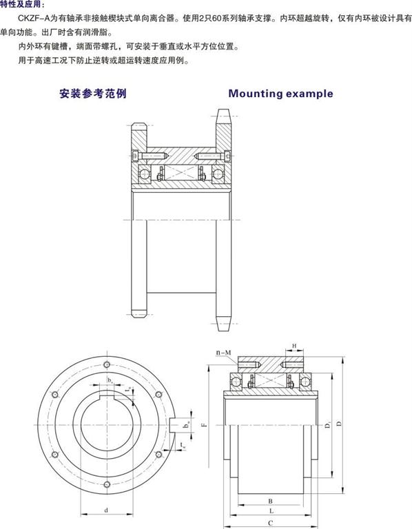 CKZF-A為有軸承非接觸楔塊式單向離合器。