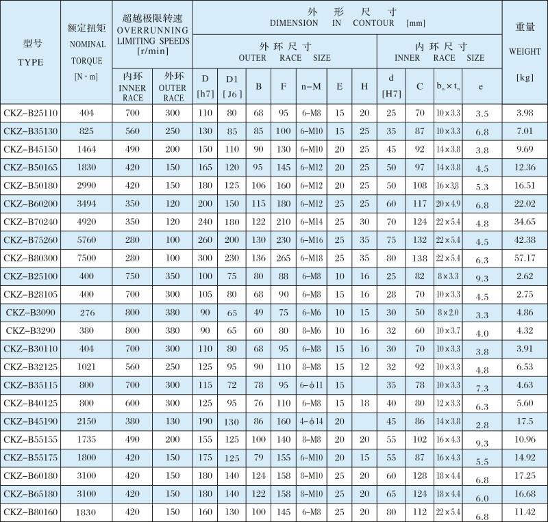 CKZ-B楔塊式單向離合器詳細內容介紹