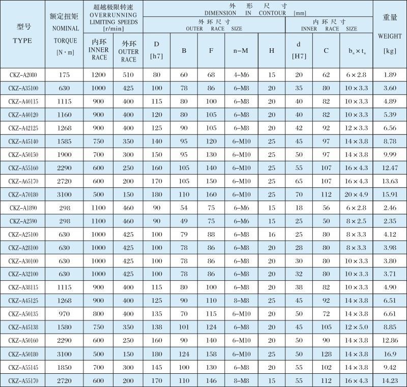 CKZ-A 楔塊式單向離合器詳細內(nèi)容介紹