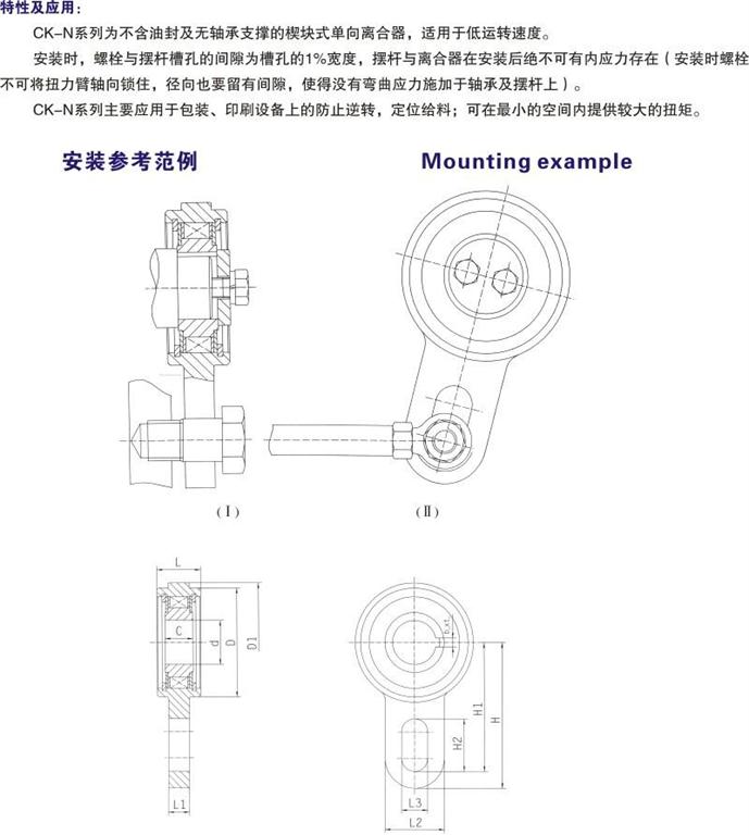 CK-N系列為不含油封及無軸承支撐的楔塊式單向離合器