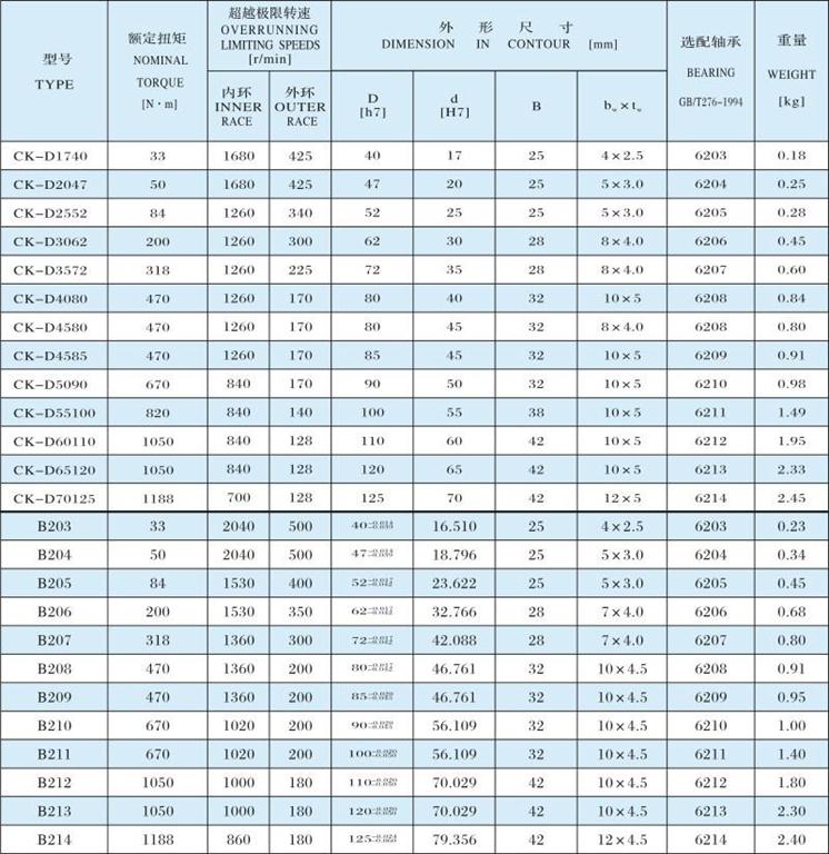 CK-D、B200 楔塊式單向離合器詳細內容介紹