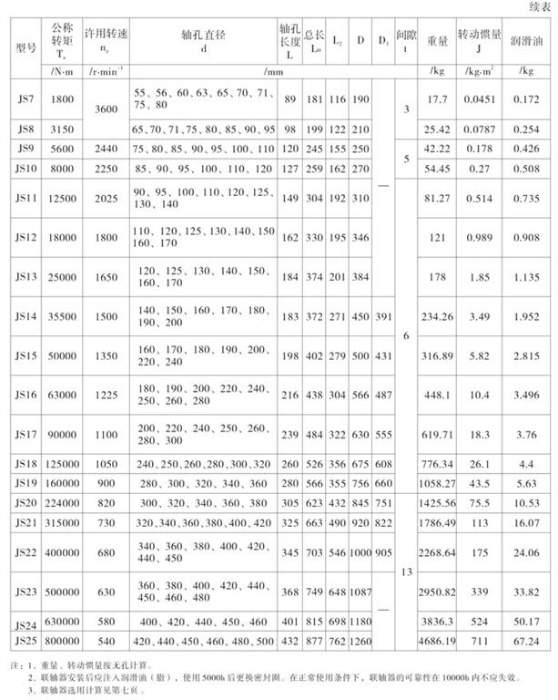 | 型號(hào) | 公稱(chēng)轉(zhuǎn)矩Tn KN.m | 許用轉(zhuǎn)速(n) r/min | 軸孔直徑 d | 軸孔長(zhǎng)度 L | 總長(zhǎng)度 L0 | L2 | L3 | D | 間隙 t | 重量 kg | 潤(rùn)滑油 kg | 許用位移量 | ||